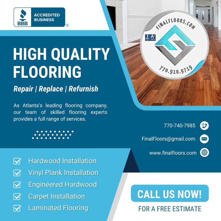 If your floors have been damaged by water, don’t wait—reach out to the flooring experts at Final Floors for a free estimate. With A-plus accreditation from the Atlanta BBB and a 4.9-star rating on Google, we’re trusted by homeowners across Atlanta. Call us at 770-740-7985 or email finalfloors@gmail.com to schedule your consultation today.