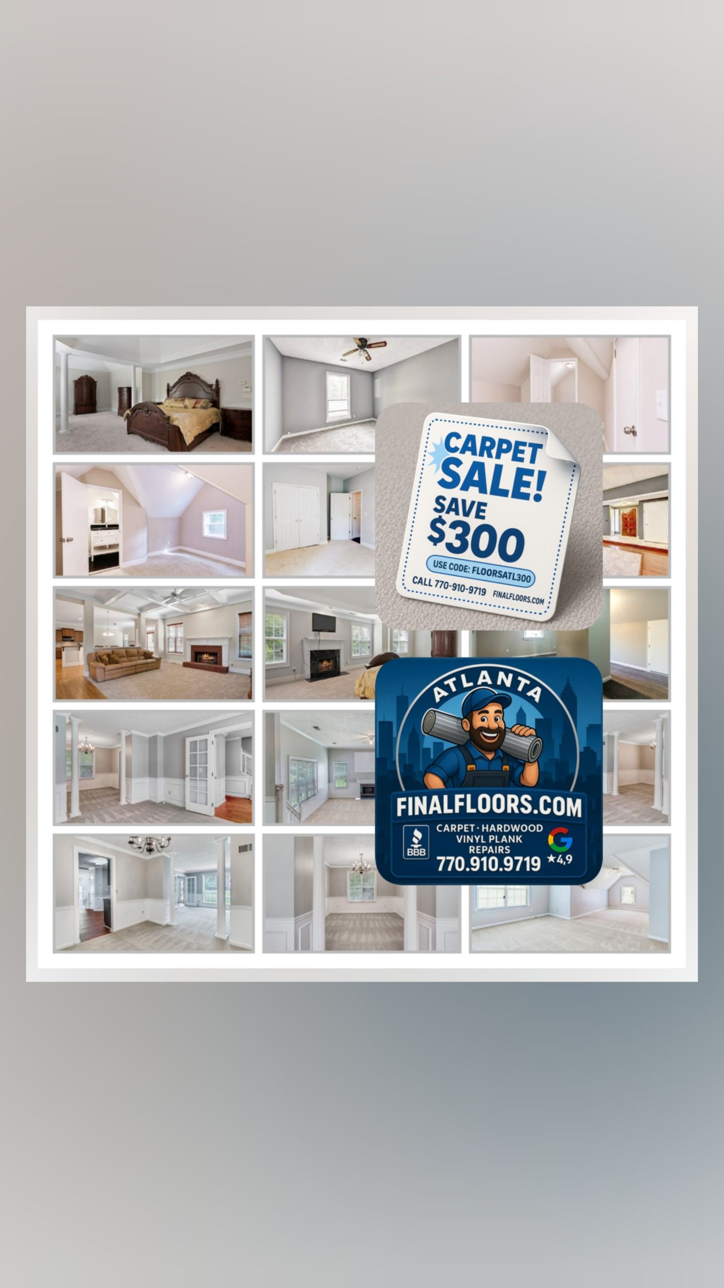Experience premium carpet services in Atlanta with Final Floors, LLC — Metro Atlanta’s trusted A+ BBB Accredited, 4.9★ Google-rated flooring contractor. Our licensed in-house crews deliver expert carpet sales, installation, replacement, and repairs using top brands like Shaw, Mohawk, DreamWeaver, and Mannington. Serving Atlanta, Buckhead, Alpharetta, Roswell, Johns Creek, Sandy Springs, and surrounding areas with free in-home estimates, flexible options, and craftsmanship built to last. Call 770-910-9719 or visit FinalFloors.com — we make floors look good.