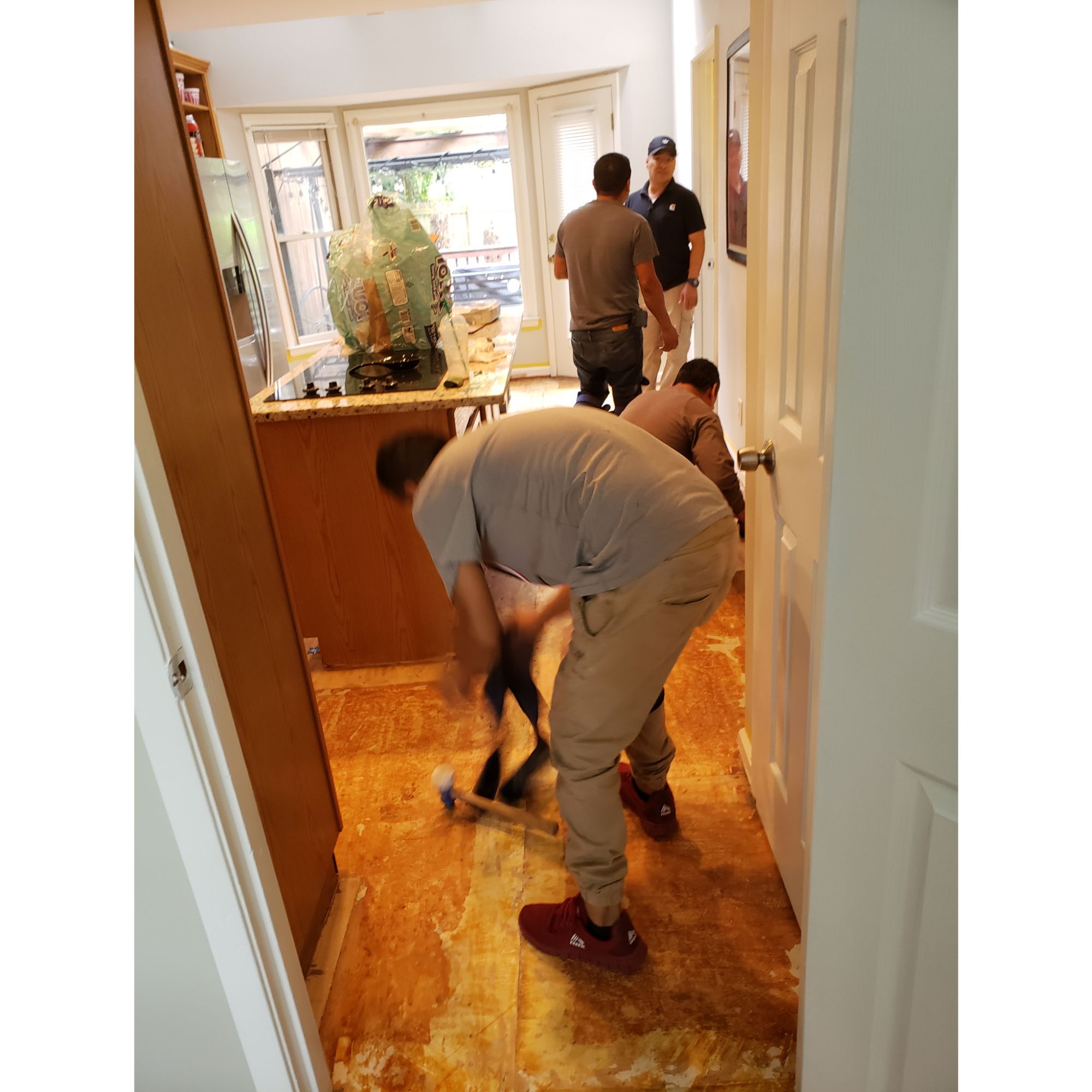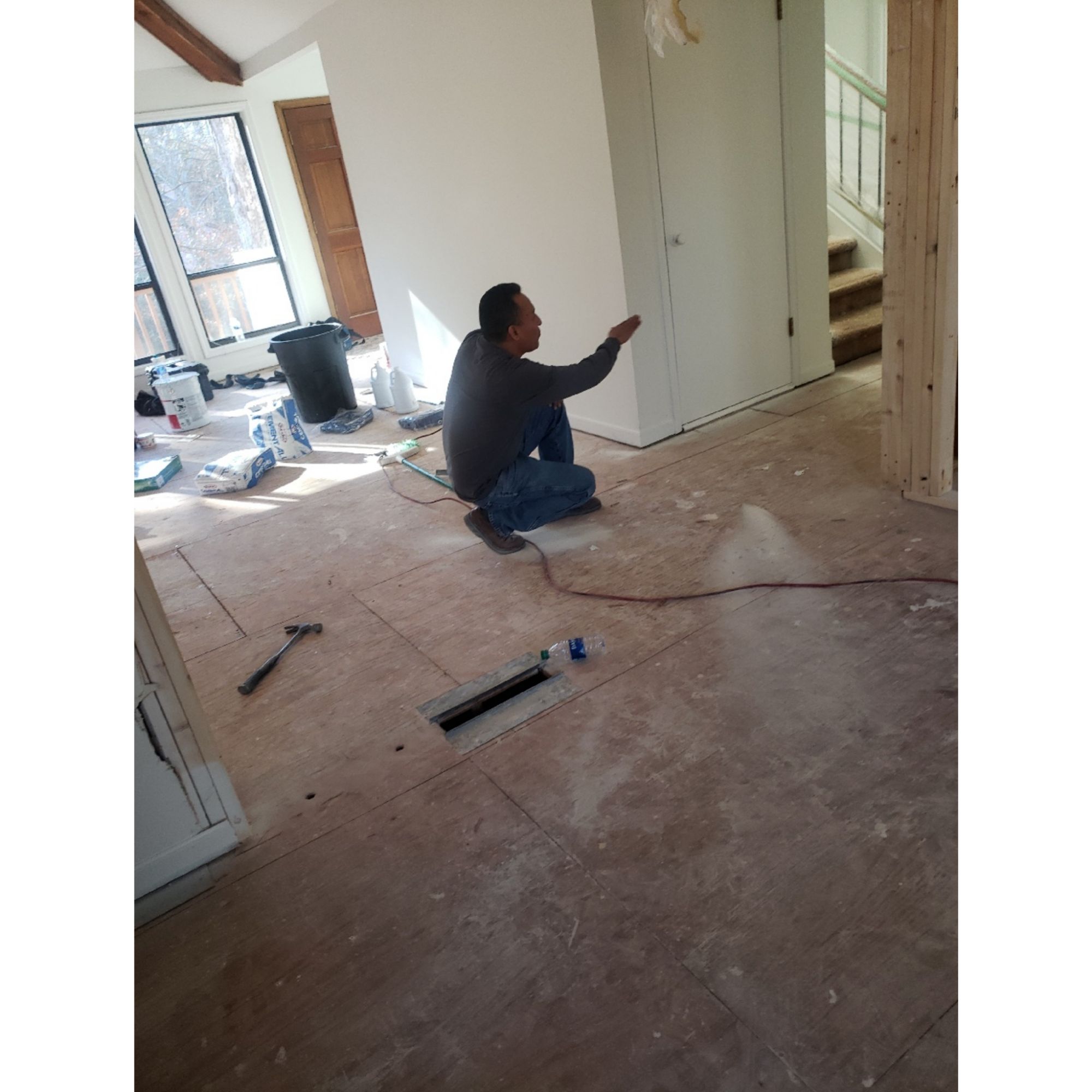 Hardwood refinishing with Minwax, DuraSeal, Rubio Monocoat & Bona. Subfloor repairs and leveling for carpet, engineered hardwood, and vinyl plank installs. Water-damage putbacks with ServPro, ServiceMaster, and Paul Davis compliance. Carpet stretching, vinyl plank board replacement, stair repairs, and trim/baseboard upgrades.